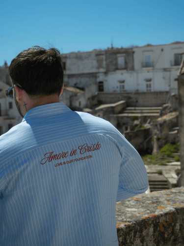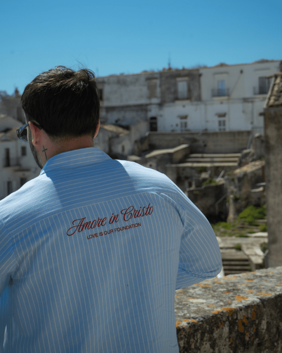 The Cristo Sweater combines a more mature, quieter look with the warmth and atmosphere of Italian summers. The phrase “La vita è più dolce con Gesù” captures Italy’s dolce vita feeling while also serving as a reminder that life with Jesus is even more beautiful.